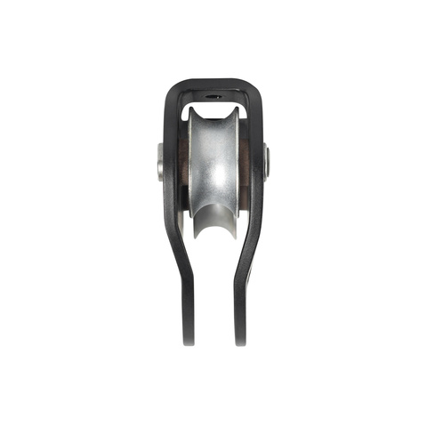 Благодаря перемычке, соединяющей щёчки, верёвка остаётся в блоке даже при полном разрушении оси блока. Конструкция исключает выщелкивание веревки во время движения.