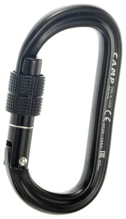 На карабине с винтовой муфтой значок "UIAA" стоит только на черных карабинах.