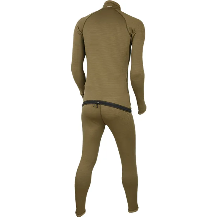 Гладкая наружная поверхность делает белье из него более износостойким, чем из Polartec® Power Dry® Midweight. Материал хорошо тянется, а антибактериальная пропитка снижает вероятность появления неприятного запаха и аллергических реакций. Благодаря особой структуре, ткань имеет лучшее в своем классе соотношение величины теплоизоляции к весу. Очень легкая и приятная. Все это переводит одежду, изготовленную из материала, в пограничное состояние между базовым и утепляющим слоями.