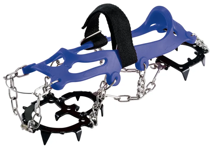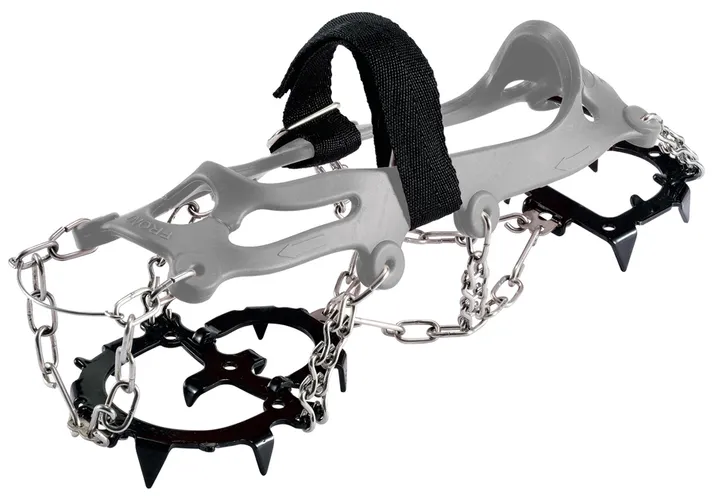 Эта модель выпускается в 4 размерах, что позволяет одевать их на любую обувь. Стальные зубья обеспечивают надежную точку опоры даже на неровной поверхности.