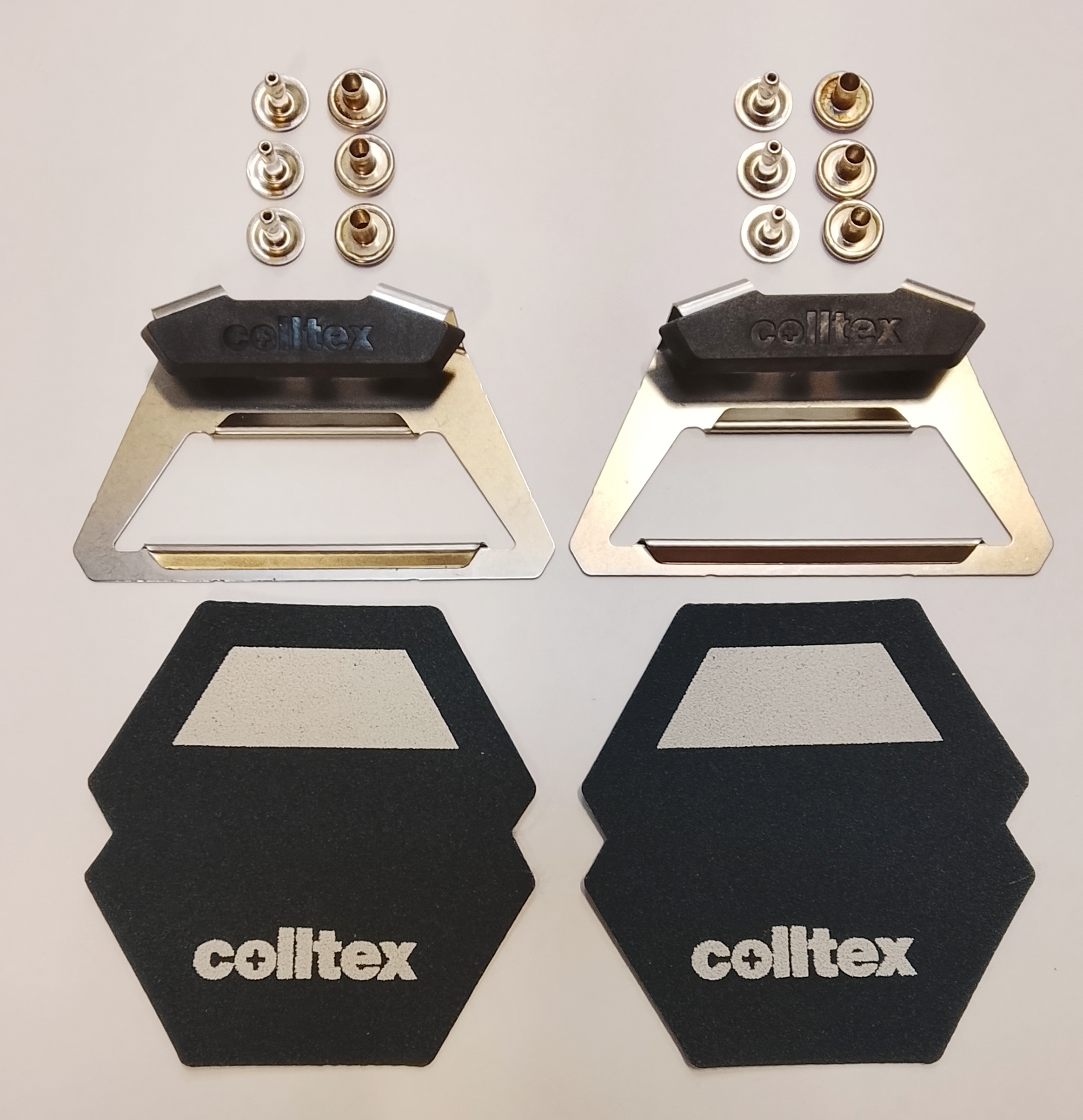 К камусу крепятся посредством кусочка тезы и заклепок. Под лыжный туризм заклепки лучше проигнорировать, и прошить толстой ниткой - это надежнее.