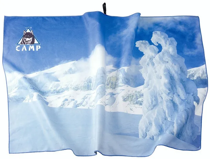 Полотенца из мягкой и быстро сохнущей микрофибры с изображением природы (4 вида фото). Каждое полотенце имеет индивидуальный чехол на молнии, вспомогательный карабин-фиксатор для удобства подвешивания при хранении или транспортировке