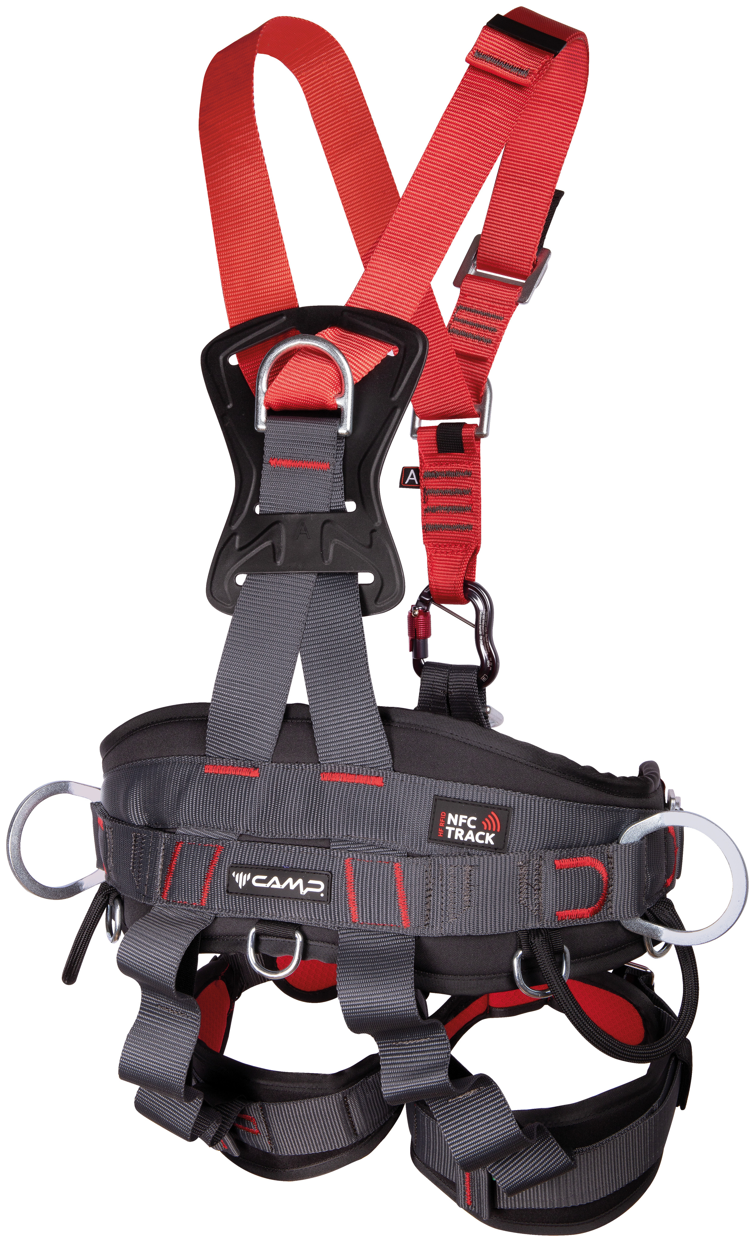 Брюшная точка прикрепления отличается наличием двух отдельных петель: верхняя для крепления грудного зажима, а нижняя представляет собой D-образное кольцо для крепления стропов и механических устройств. Поставляется со стальным автоматическим соединительным элементом в три движения с перемычкой против вращения. Оборудована вшитой лентой поддержки грудного зажима в правильном направлении.
