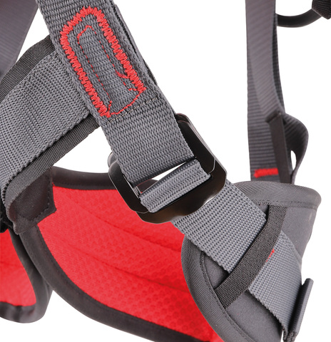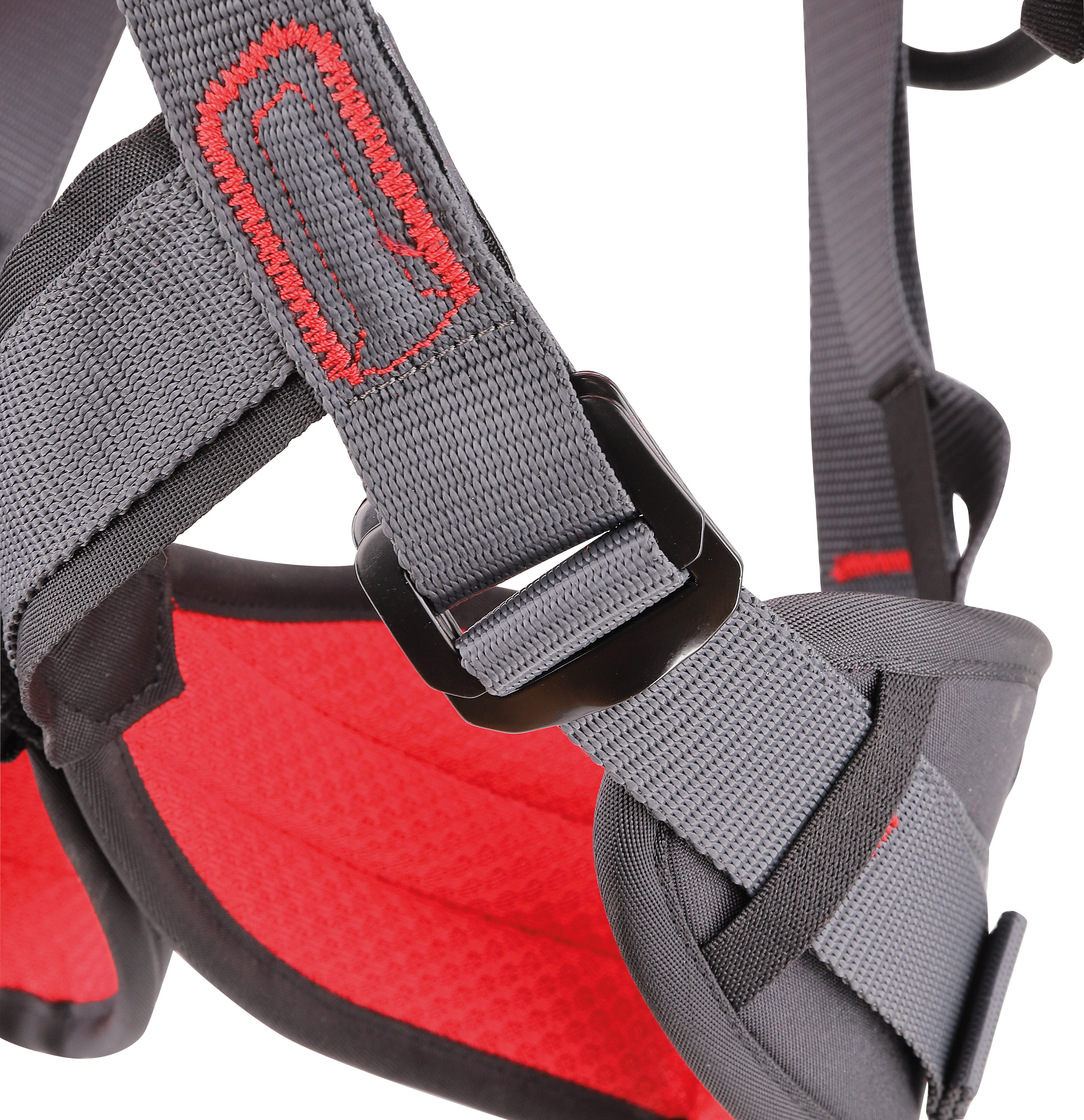 5 точек крепления из алюминиевого сплава: 1 грудная и 1 на спине для крепления страховочных устройств, 1 брюшная для работ в подвешенном состоянии и 2 боковых для позиционирования и ограничения доступа.