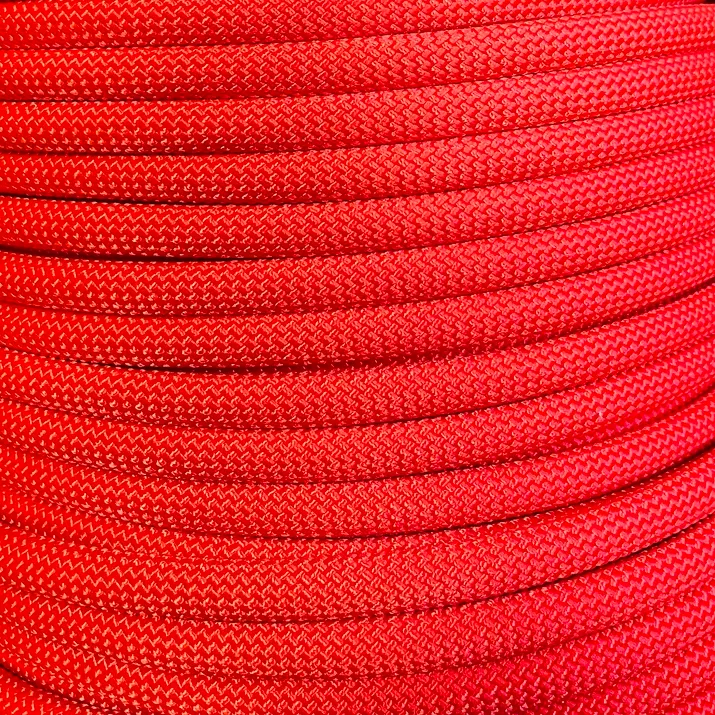 48-ми прядная плетёная веревка с сердечником низкого растяжения. Оплётка выполенна из некручёных цветных нитей и термообработана.